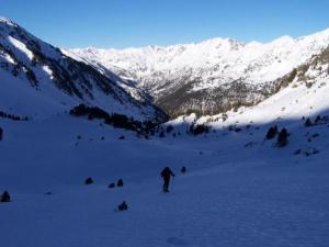 Subimos por Sorteny con intención de hacer la travesía hacia el valle de Rialb, las condiciones en la cara sur y este son de nieve muy dura, por lo que desistimos de bajar por la norte y oeste, posiblemente también muy dura y/o costra.