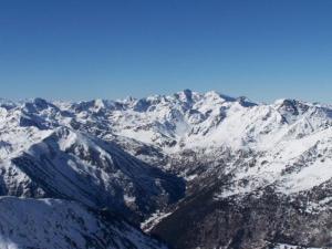 Desde la cima una vista hacia la zona de Ordino-Arcalis con el macizo de la Pica de Estats al fondo.