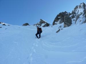 Es una canaleta facil, son uns 150 m., comença amb una inclinació de 35º i va