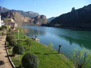 Situat al costat d´un embassament ofereix moltes parets i crestes que escalar.