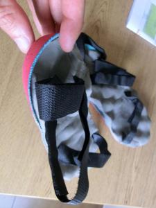 Hola Papers, perdona, que entre pitos y flautas no había podido contestar a tu pregunta. Lo primero que debo decir es que ya no son, "eran", porque desde hace un tiempo están extraviadas y no sé si las perdí en alguna travesía, si están traspapeladas o si se han ido al mundo de las chanclas MYOG... Utilicé unas plantillas normales, de algún calzado que ya no usaba. Hice dos agujeros en los laterales de cada una por los que pasé el cordino, y con una tanca por la parte de arriba podía regular el tamaño de la abertura... para mí, la mayor ventaja de este sistema con tanca respecto a los de las fotos que habéis mostrado es precisamente la versatilidad, el hecho de poder ajustarla independientemente de lo que lleve en los pies, desde nada hasta un patuco gordo. Eso hacía que me sirvieran todo el año... de peso no recuerdo exactamente cómo andaban, creo que rondaban los 20 gramos...
